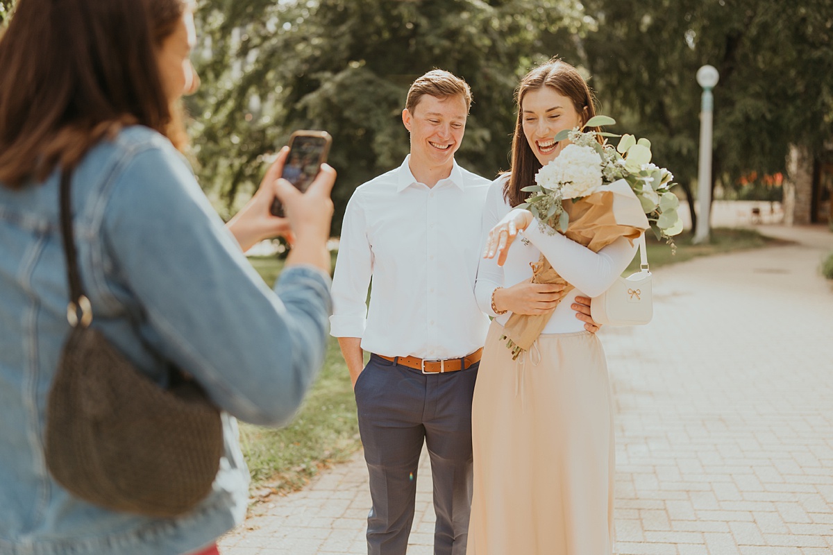 Nick planned every detail with care, choosing a beautiful spot that felt both romantic and true to them. When he got down on one knee, Erin’s reaction said it all… pure happiness! Her smile is completely infectious! The moment felt intimate, even in a busy city, as if time slowed down just for them.